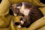 Our cat takes the shrimp, shakes it once to make sure it's really dead :-D and then eats it while smacking its lips!